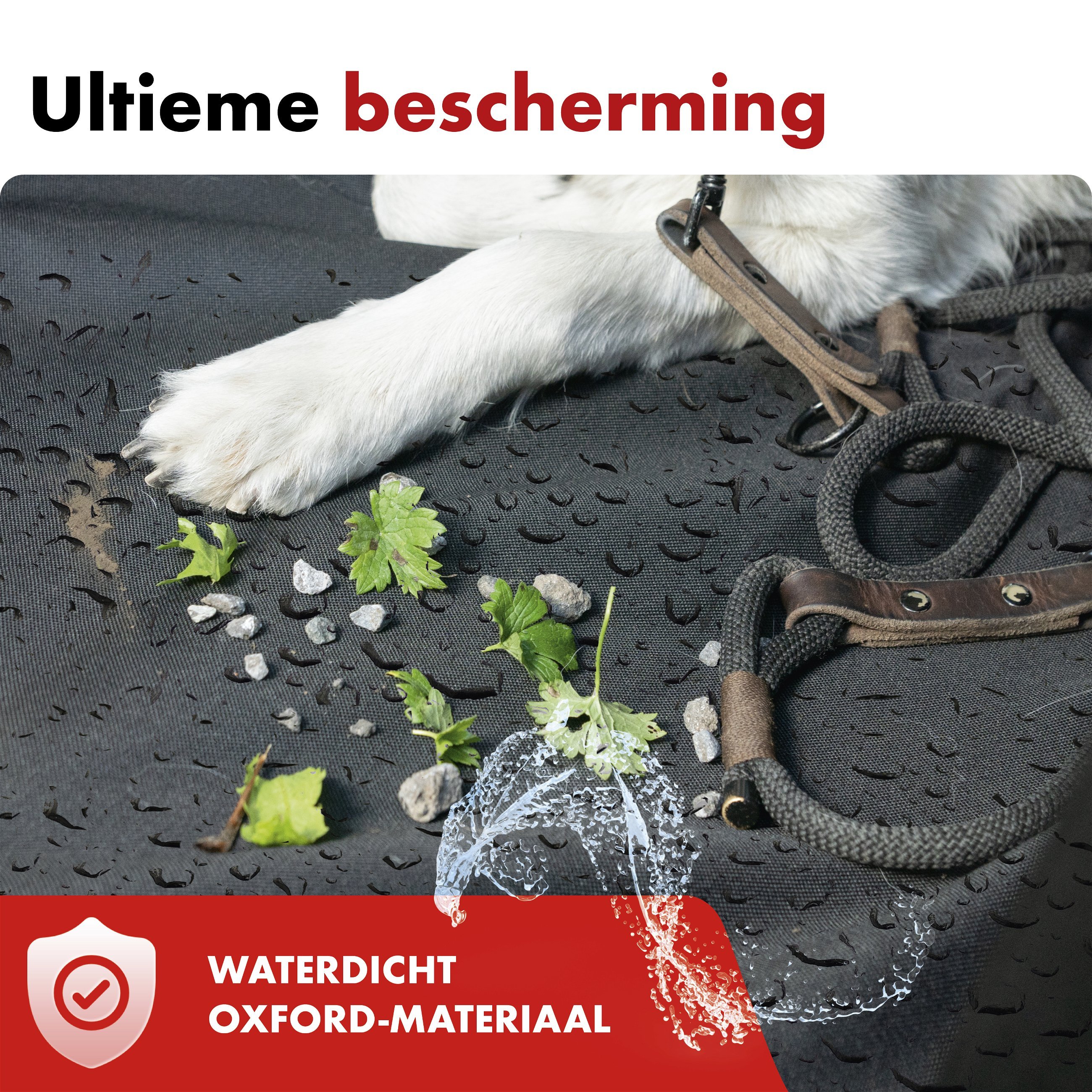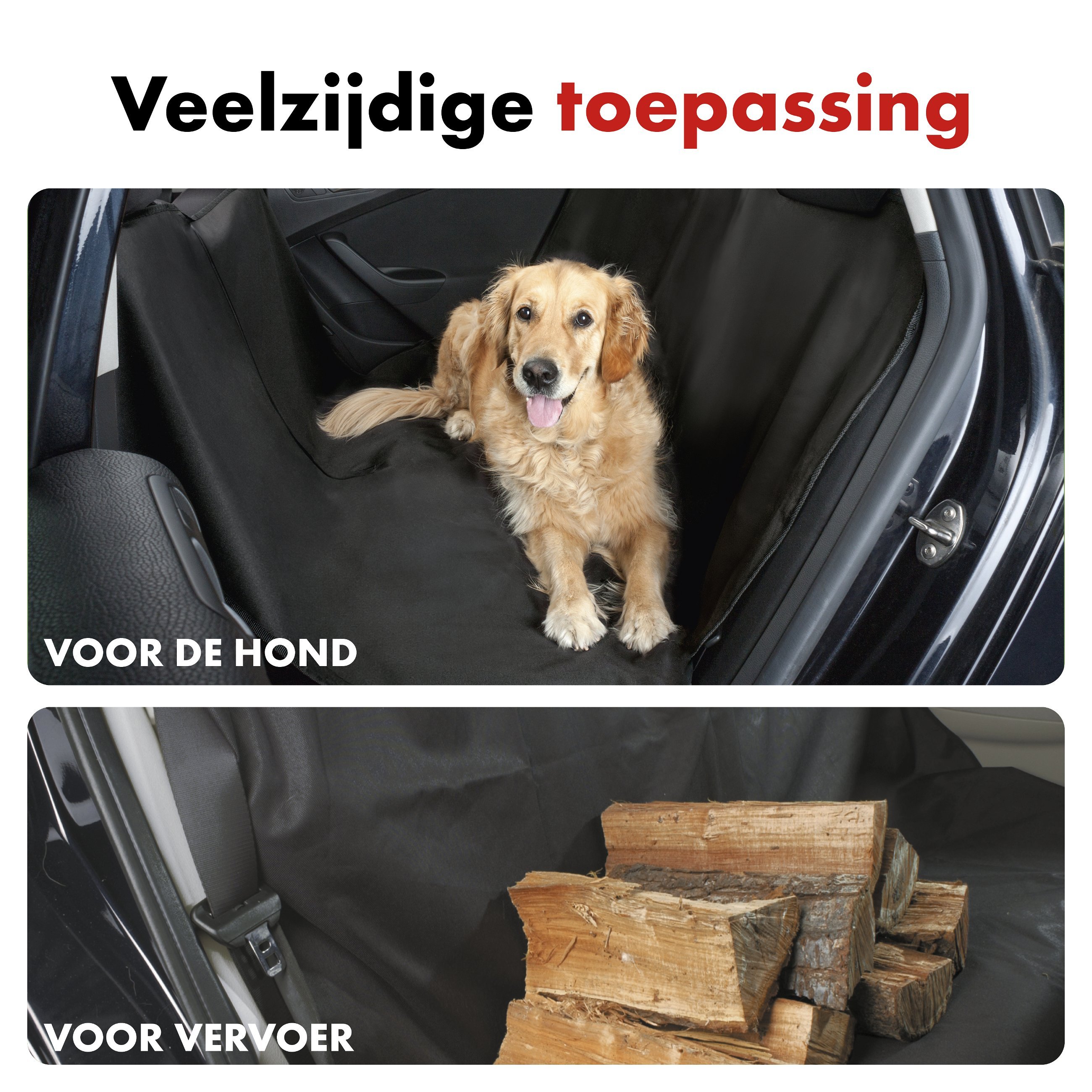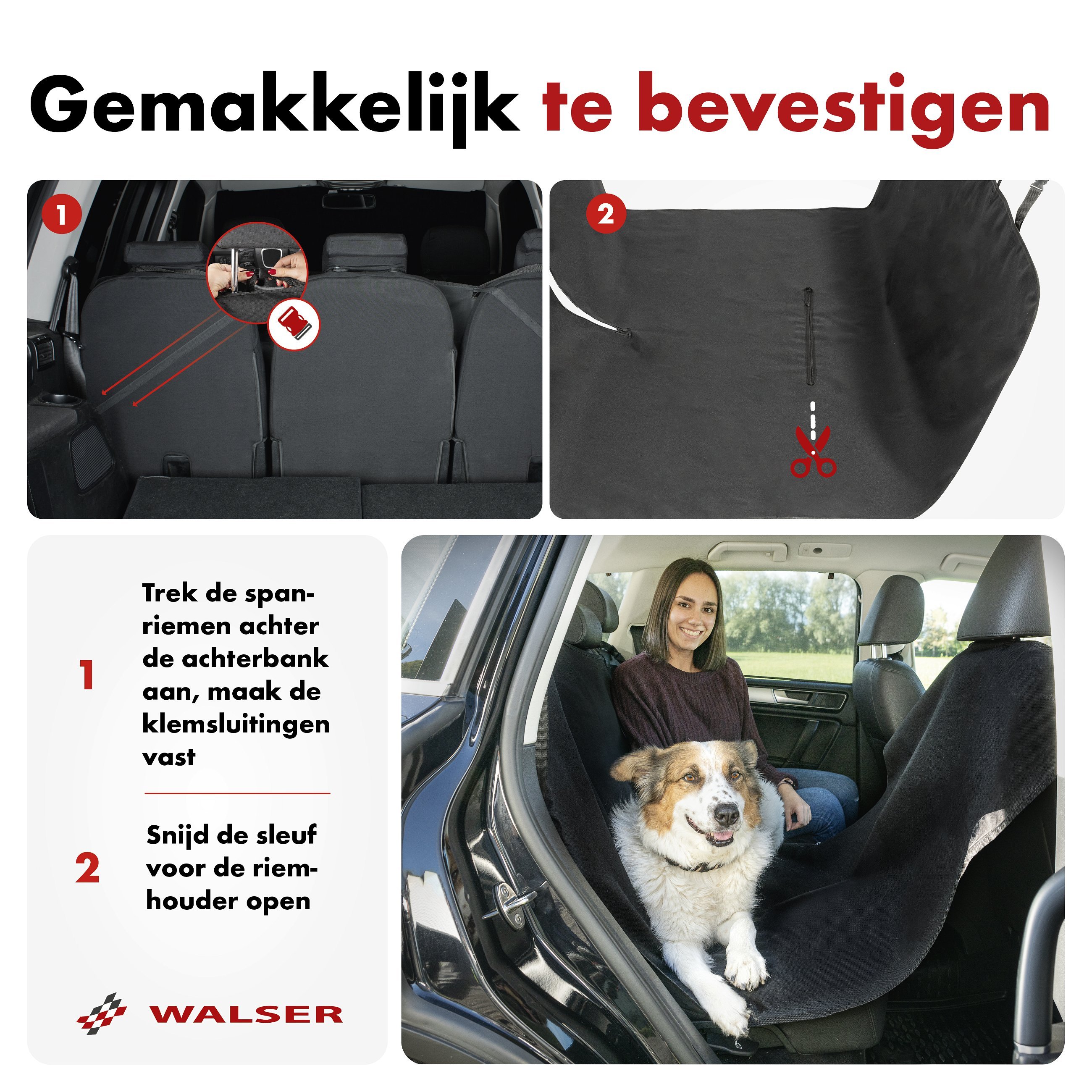 Met behulp van spanbanden wordt de hondendeken Nero veilig aan de stoelen of aan de hoofdsteunen bevestigd. Zo is het complete gebied van uw achterstoel afgedekt. De hondendeken Nero is water- en vuilafstotend, en biedt de optimale bescherming voor uw waardevolle autostoelen.