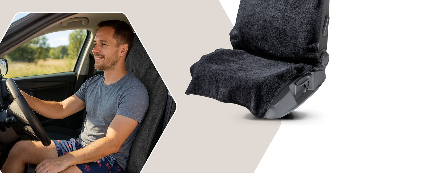 Auto stoelhoes van badstof, autostoelbeschermer wasbaar zwart, 1 stuk