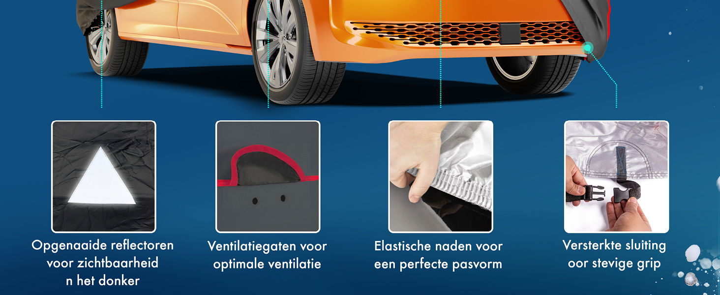 - Leveringsomvang: 1 hagelbeschermhoes, 3 spanbanden