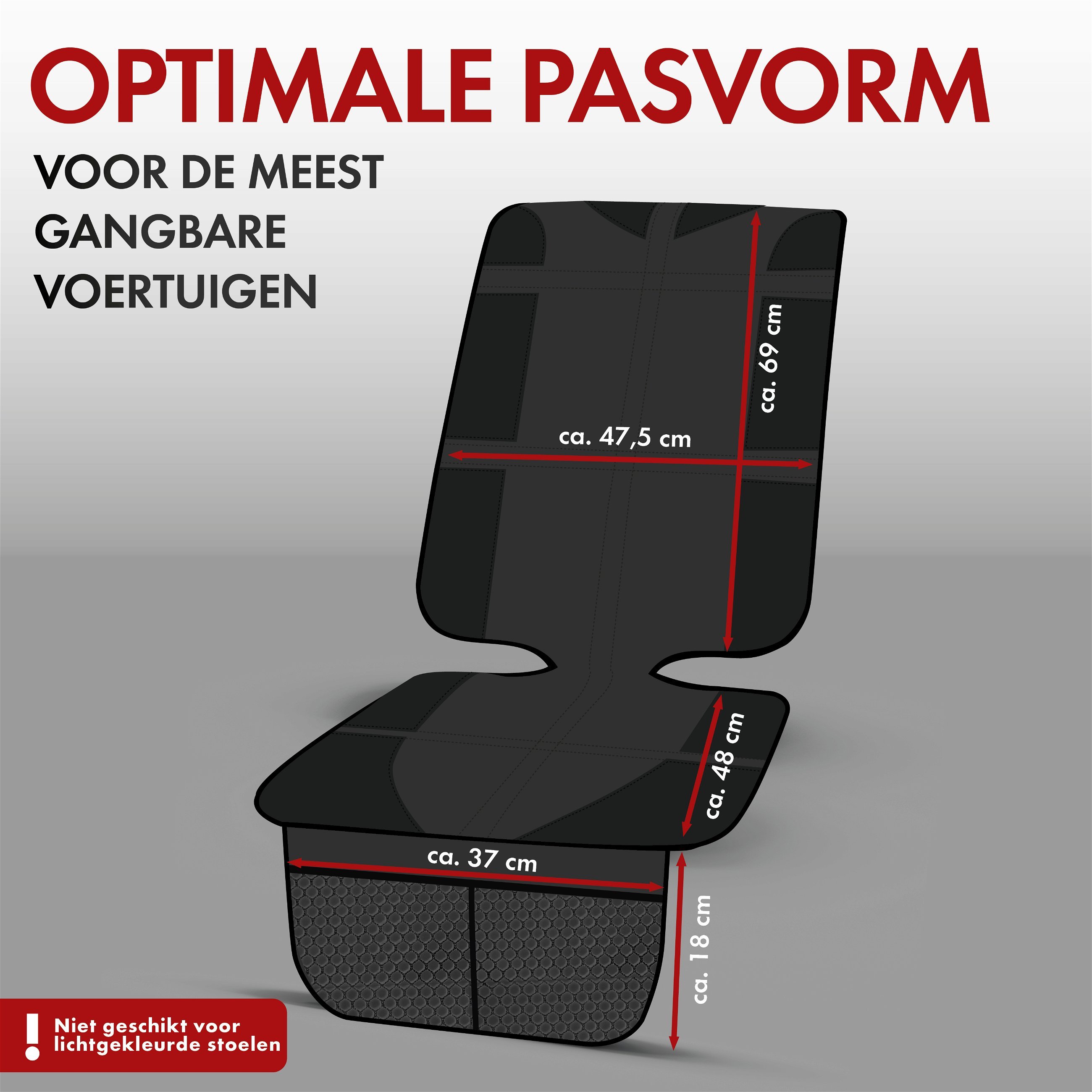 De onderlegger voor kinderstoelen beschermt de autostoelen tegen vervuiling, wanneer uw kleintjes lekker gaan eten in de auto. Bovendien is het Isofix-product deugdelijk en kunt u het zonder bedenkingen gebruiken. De grote, netvormig vakken zitten aan de voorzijde van het model. Deze bieden ongelofelijk veel opbergruimte voor alle belangrijke reisgenoten. Zo hebben uw kinderen altijd speeltjes, kleurboeken, potloden en een snackje binnen handbereik en staat niets meer in de weg van een ontspannen reis. Het materiaal van de onderlegger voor de kinderstoel is zeer robuust en kan erg gemakkelijk worden gereinigd. Daardoor kunt u ontspannen achteroverleunen en genieten van uw reis met George.