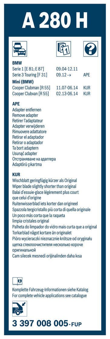 Ruitenwisser A 280 H, 1 achterruitwisser